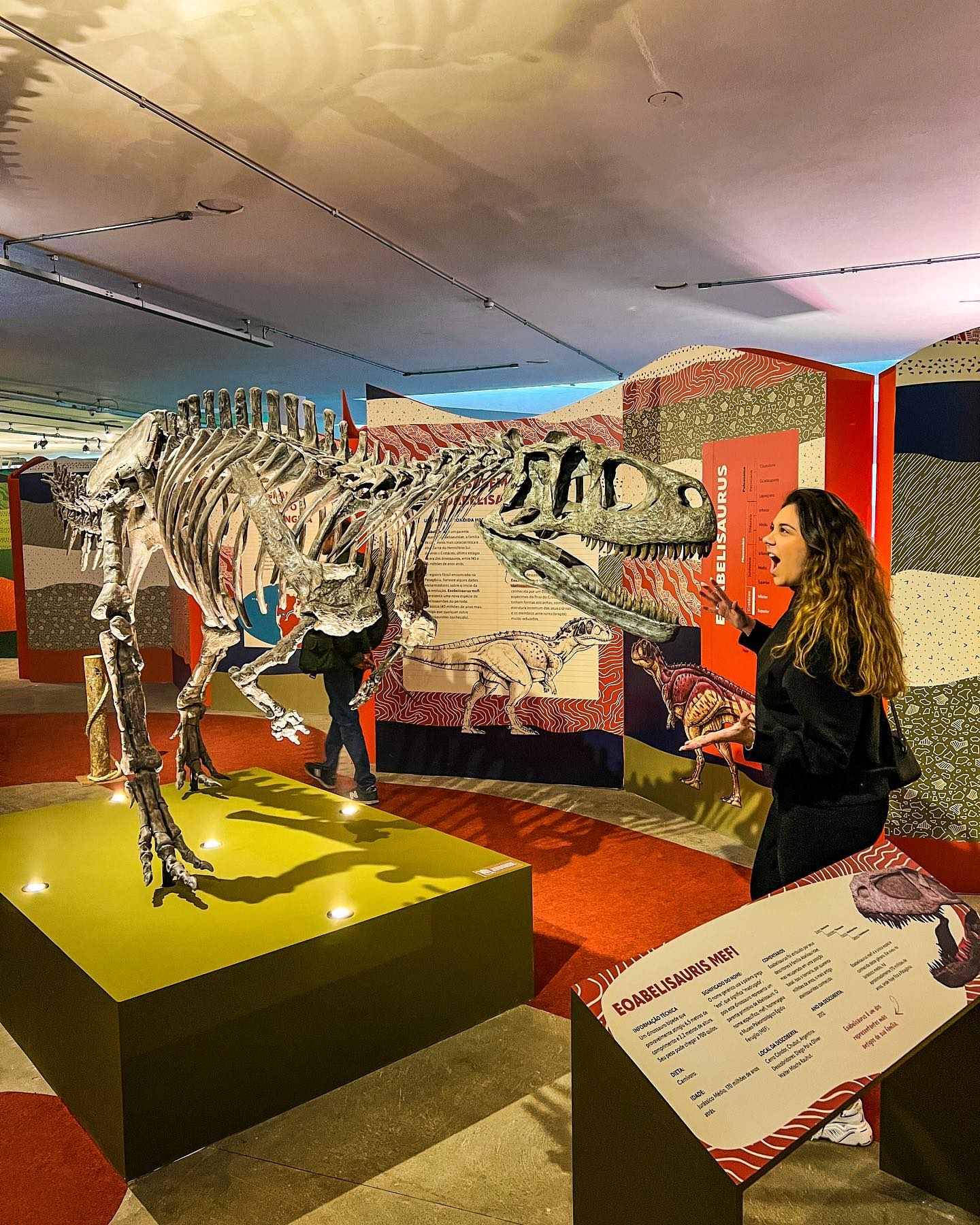 A mostra que fica até 27/11/2022 tem vários esqueletos de dinossauros e fósseis originais dos períodos Triássico, Jurássico e Cretáceo, incluindo o maior de todos, o titanossauro Patagotitan, e o gigante carnívoro Tyrannotitan!! 😱
